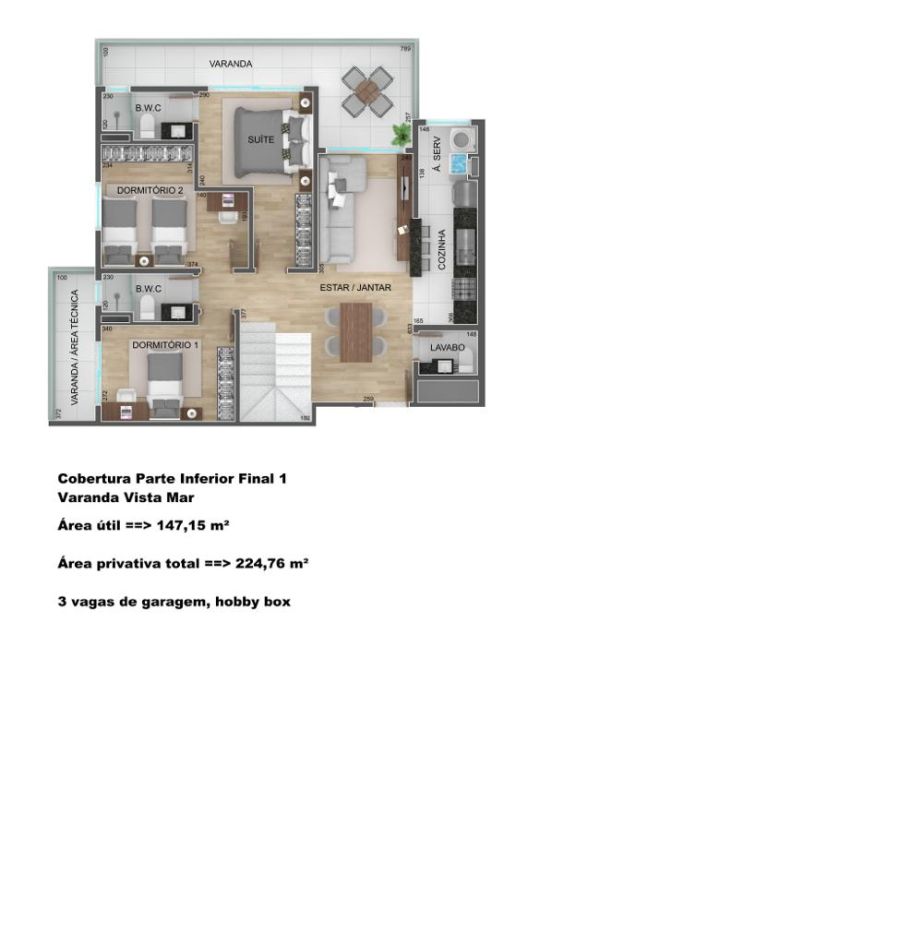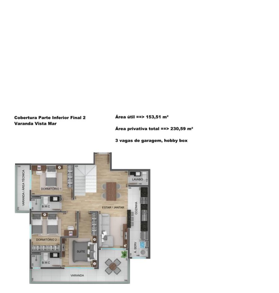 A ampla varanda gourmet com fechamento em vidro é um convite para viver bons momentos, enquanto a sala integrada à cozinha planejada com ilha central revela um ambiente moderno, elegante e perfeito para receber. A iluminação planejada e o ar-condicionado em todos os ambientes garantem conforto absoluto. Os dormitórios, incluindo a suíte master com vista para o mar, trazem acabamentos premium. A planta de 99 m² foi projetada para oferecer conforto, funcionalidade e bem-estar, com 3 dormitórios, 1 suíte e 2 vagas de garagem cobertas, além de hobby box exclusivo.
