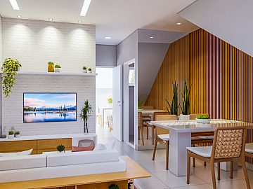 • Sala de estar e jantar integradas