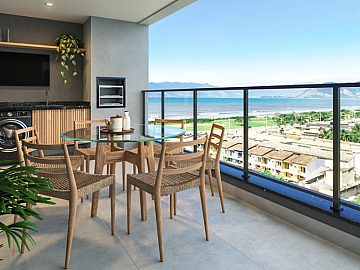 Varanda gourmet ampla com churrasqueira em todas as unidades