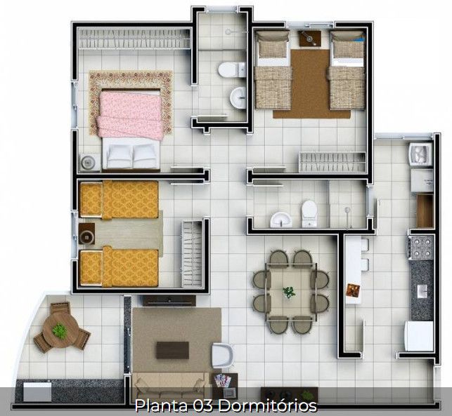 • 3 dormitórios, sendo 1 suíte para mais privacidade